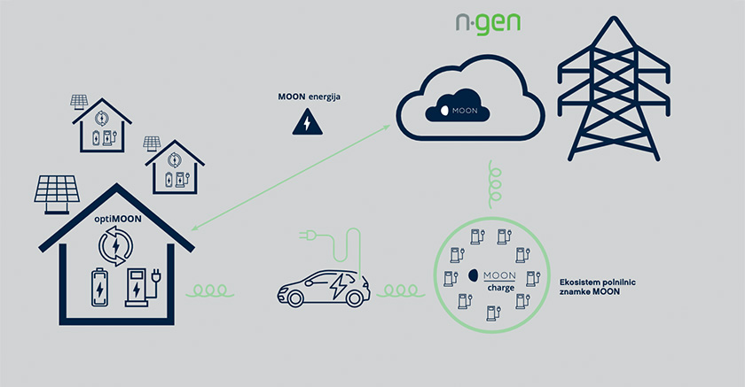 Celovit ekosistem znamke MOON je tako nadgrajen s pametnim upravljanjem v oblaku ter omogoča uravnavanje presežkov in primanjkljajev električne energije v določenem trenutku. Z razvojem v coMOONity tako ekosistem MOON ponuja vse na enem mestu, od električnih avtomobilov do sončnih elektrarn, hranilnikov energije, polnilnih postaj in inteligentnega sistema optiMOON za upravljanje elektrike v objektu. Kupci boste v prihodnje deležni paketov, s katerimi boste imeli ves čas vpogled v podatke o vaši proizvodnji in porabi električne energije, vključitev v comMOONity pa vam bo omogočala rezanje oziroma reguliranje konic na najbolj optimiziran način, da bodo vaše proizvodne naprave in porabniki čim bolje izkoriščeni, udeleženi boste pri prihodkih in obenem še pri nudenju storitev prožnosti, za kar boste tudi nagrajeni.