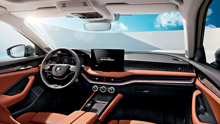 Voznikov prostor je dodobra digitaliziran, zdaj tudi s 13-palčnim osrednjim zaslonom, največjim v kateri koli izvedbi tega modela doslej. Tudi Superb bo vozniku in sopotniku omogočal prijetno izkušnjo s kombinacijo analognega in digitalnega, podobno kot Kodiaq. Gre za tri lična vrtljiva stikala z digitalnim zaslonom pod glavnim ekranom, ki jim bosta voznik in sopotnik lahko po potrebi določala nove funkcije, vse to pa bo vidno tudi na osrednjem zaslonu.
